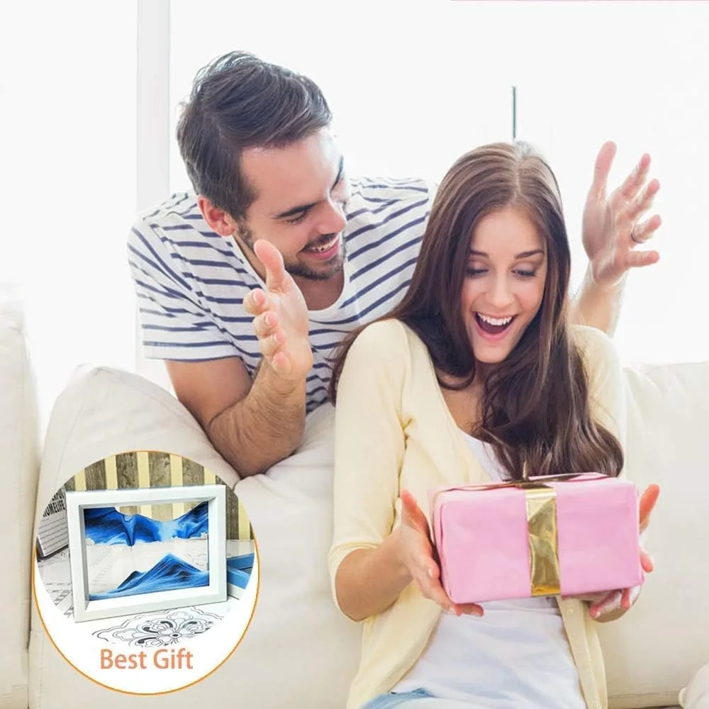 Hareketli Kum Resim İllüzyon Doğal Manzara 2 Yüz Çerçeveli 3D Görüş Masaüstü Sanat Aynalı WGQ6EDAYUE